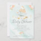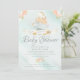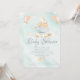 Um convite para chás de fraldas de aquarela bonito apresenta um bebê fada na parte de trás de um pássaro azul.