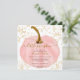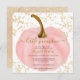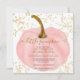 Abóbora-rosa-branca-pastel-branca-água-colorida e chá de fraldas de confetti-brilho-dourado com uma tipografia de fontes elegante, com uma bonito abóbora branca-acinzentada no outono e abóbora-d'água-castanha, perfeita para a estação do outono e Halloween.