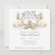 Formato quadrado exclusivo e divertido para um tema de convite de chá de fraldas exclusivo e de destaque. Mão pintada em aquarela pela artista e designer Audrey Jeanne Roberts. As rosas azuis e rosadas formam uma coroa com fuselagem e dourada. Dentro a coroa é o design de texto de tipografia "que a aventura comece" com uma fenda de ambos os lados. A cor rosa pálido pincelada do lado oposto com uma montanha de triângulo e design de seta pode ser alterada para corresponder à paleta de cores. Copyright, Audrey Jeanne Roberts.