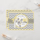 A viga chique das cinzas e do branco imprime com uma coruja amarela empoleirada em um cartão do ramo de carvalho e do arco 3D-look e do convite do chá de fraldas da menina da guarnição da fita.