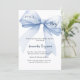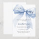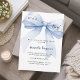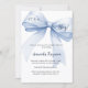 Um fundo branco elegante, decorado com um grande arco azul. Personalize e adicione um nome e detalhes da parte. Texto no arco: É um menino!