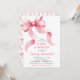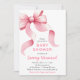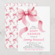 Este convite de chá de fraldas giro e caprichoso apresenta um arco de coquete cor-de-água rosa. O texto combina o script manuscrito e as fontes serif para uma aparência na moda e moderna.