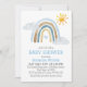 Convite Chá de fraldas arco-íris de cor azul-esbranquiçada