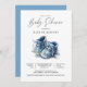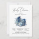 Um belo e brilhante calçado de bebê azul, um convite para o chá de fraldas de um chá de fraldas de menino, num estilo mínimo moderno de aquarela. Um estilo ousado e único.