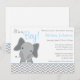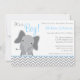 Uma cinza moderna e um elefante azul-pastel moderno chamado convite para o chá de fraldas. Perfeito para um chá de fraldas. Tamanho do convite: 6,25" x 4,5"
