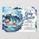 Convite Chá de fraldas Azul de Água Personalizada