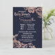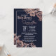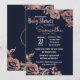 Flores de ouro rosa e tipografia elegantes, quicas e simples e modernas imprimem flores e tipografia em fundo azul marinho, convites para Baby Shower. Este design clássico e sofisticado é perfeito para a mãe da classe, da moda e da na moda. Personalize com sua própria mensagem na frente e um monograma personalizado inicial no verso. Todas as impressão de fotos.