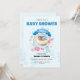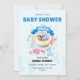Este maravilhoso convite para chás de fraldas apresenta um fundo azul pastel sereno, adornada com gráficos infantis, incluindo garrafas, roupas e brinquedos. No centro, um recém-nascido dormindo aninhado em lua crescente captura a essência empolgante da ocasião. O convite fornece todos os detalhes essenciais em uma fonte limpa e fácil de ler. Perfeito para comemorar a chegada próxima com amigos e familiares, esse convite combina gentileza com elegância para dar o tom perfeito para o evento.