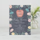 Este cartão de convite para o chá de fraldas de "a maçã do meu olho" bonito apresenta uma maçã vermelha com folhas azuis marinhos sobre um fundo de quadro preto emoldurado por flores e verdes. O verso apresenta um fundo azul-céu com padrões florais de maçã. Personalize-o para as suas necessidades. Você pode encontrar mais produtos para urso polar na minha loja.