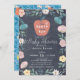 Convite Chá de fraldas Azul Floral Preto-Apple