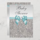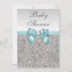 Convite Chá de fraldas Azul Teal Sequins de Silver Falsos