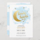 Celebre a chegada de uma pequena estrela com este charmoso convite de chá de fraldas "Twinkle Twinkle Little Star"! Apresentando blues de aquarela macia, estrelas de ouro delicadas, e nuvens brancas sonhadoras, esta design captura a magia e a maravilha de um novo bebê. Perfeito para uma celebração aconchegante e celestial, este convite é elegante e adorável. Personalize-o para criar um tesouro que os hóspedes vão tesourar. Ideal para pais que querem adicionar um pouco de brilho e calor ao seu dia especial!