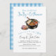 Quem diz que chás de fraldas não podem ser deliciosos? 🍲 👶 Este convite BaBy-Q serve algo especial, um pote aquoso aconchegante com favoritos grelhados, vapor e sabor em cada pincelada! Com um pano de fundo azul de gingham e texto japonês que significa "convite para Chás de fraldas", é perfeito para famílias que amam a comida que acreditam que uma celebração deve sempre vir com segundos! Chopsticks da minha cozinha feliz no Japão, Junko 🍜
