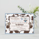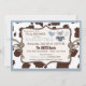 impressão de vaca com jumper de bandana, meias de botas de cowboy e fralda na placa de convite do chá de fraldas de linha de tecido design em azul e castanho.
