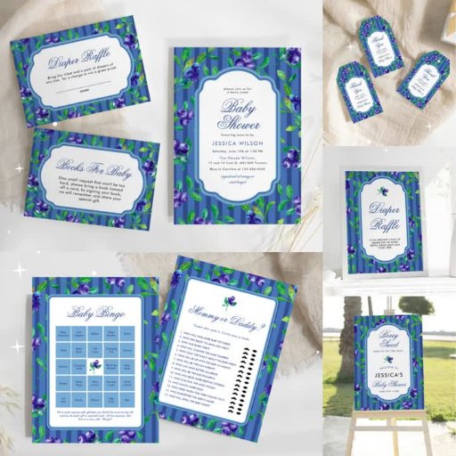 Berry Sweet Baby Blueberry Chá de fraldas Convite. Itens correspondentes disponíveis.