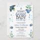 Este chá de fraldas de mirtilo é perfeito para celebrar a chegada de um "Bebê Berry Sweet". A design apresenta frágil mirtilos de aquarela, criando um sentimento charmoso e caprichoso. O convite é para impressionar seus convidados e dar o tom para uma celebração encantadora. Isto é muito popular para o chá de fraldas de menino celebrando tudo azul!