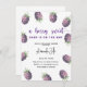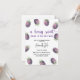 Cartão de convite para chás de fraldas em forma de grão com ilustração aquosa das amoras. O texto diz "um bebê doce de fruta está a caminho." Itens correspondentes disponíveis.