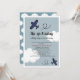 Este chá de fraldas de um garoto fofo "para cima, para cima e para fora" por e-mail apresenta um fundo azul claro com aviões e nuvens emoldurados por uma fronteira branca. O verso apresenta um fundo azul-céu com padrões de nuvem. Personalize-o para as suas necessidades. Você pode encontrar produtos correspondentes na minha loja.