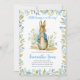 Celebre a chegada do seu pequeno pacote de alegria com este adorável Convite Chá de fraldas Blue Peter Rabbit. Este convite encantador mostra um coelho doce numa jaqueta azul clássica, cercado por folhagem de cor aquosa e delicados sotaques azuis florais. Este convite certamente agradará aos seus convidados e dará o tom para uma celebração alegre! BBS298