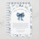 Chá de fraldas de Blueberry Berry Sweet Obrigado - Celebre a chegada de um precioso pequeno com este encantador Convite para Chá de fraldas Blueberry Berry Sweet. Esta elegante design é uma mistura perfeita da natureza e do talento moderno, enfeitiçada com chavões frescos e tostados em um verde delicado. Um arco azul suave adiciona um toque doce, melhorando o estilo caprichoso mas sofisticado do convite. A escrita de caligrafia fluindo dança através do cartão, aliada à elegante tipografia moderna, criando um equilíbrio harmonioso entre a tradição e a elegância contemporânea. É um convite gracioso e animador que dá o tom para uma celebração tão doce quanto o bebê no caminho. O verso do convite apresenta um padrão de gingham coordenado, o Convite faz parte de uma coleção.