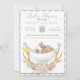 CHÁ DE FRALDAS BOHO Convite Gênero Neutral - Baby Antler Hammock com Rosas - Moderna Caligrafia Pinta BOHO Estilo Bebê - criança dormindo com animais empalhados em uma rede verde macia pendurada entre os veados com um spray coordenado por cor de rosas e um pequeno pássaro amarelo decolado por uma bela borda verde de gingham correspondente no verso do convite - © Whimical Artwork™
