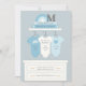 Boho inspirou design com azul e cinza, tradicional para um design chá de bebê. Editar título do texto para qualquer tipo de chá. Ilustração original de Becky Nimoy. Acentos de arco-íris, coração e monograma.