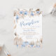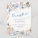 Celebre sua abóbora no caminho com este doce e na moda Boho Boho Pumpkin Chá de fraldas Invitation. Este design apresenta tons azuis macios emparelhados com abóboras brancas e azuis de cor d'água, verde sutil e sotaques elegantes de grama pampas, criando a combinação perfeita de encanto rústico e elegância do boho. Ponha o tom para uma bela e sentida celebração com este convite à abóbora de vassoura azul, perfeito para dar as boas-vindas ao seu bebê neste outono! BBS499