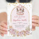 Convite para Chá de fraldas Carrossel Floral de Arco Rosa e Dourada