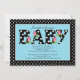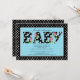 Comece seu chá de fraldas com nossos adoráveis convites para o chá de bebê. Nosso convite para chás de fraldas fofo apresenta a palavra "bebê" em um padrão de bolinhas preto e branco com tulipas cor-de-rosa definidas em um fundo azul. Perfeito para um chá de fraldas. Disponível em nosso compro em www.celebrateitinvites.com em outros esquemas de cores.