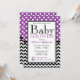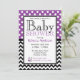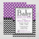 Convites de chá de bebê, de na moda e grisalho, com bolinhas brancas sobre roxo no topo e um padrão zigue-zague chevron preto e branco na parte inferior. Personalize com os detalhes do chá da Mamãe e escolha o tipo de papel também!