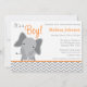 Um convite temático moderno do chá de fraldas do elefante das cinzas e da laranja. Aperfeiçoe para um chá de fraldas do rapaz pequeno.