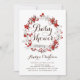 Belo convite para chás de fraldas florais. Apresenta uma coroa floral de flores vermelhas e cinzas de primavera com caligrafia balnear. Este convite para chá de fraldas de coroa floral será perfeito para chás de fraldas de Natal e feriados. Personalize adicionando os detalhes do evento.