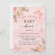 Para um chá de fraldas moderno estilo boho. Um fundo metálico roxo e roxo, roxo e fino. Decorados com ouro rosa e flores, rosas, erva-pampas e borboletas cor-de-rosa. Personalize e adicione um nome e detalhes da parte.