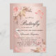 Para um chá de fraldas moderno estilo boho. Um fundo de gradiente rosa ouro. Decorados com ouro rosa e flores, rosas, erva-pampas e borboletas cor-de-rosa. Personalize e adicione um nome e detalhes da parte.