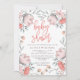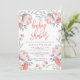 Este convite à moda, feminino do chá de fraldas caracteriza flores e folhas da aguarela em máscaras silenciado do rosa e das cinzas.