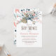 Cor pastel macia em coral, hortelã, chaleira e marrom adornam o topo em estilo botânico com bagas e cones de pinho. Esta tipografia de tendência é personalizável ou mantém este estilo divertido como é para sua conveniência. Um convite perfeito e neutro para um bebê ou chá de menina.