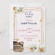 Este é um design de placa de chá de fraldas com carro vintage, flores brancas e quadro dourado. Este cartão é um presente especial para este dia feliz histórico. Obrigado por comprar