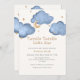 Convite para chás de fraldas bonito e adorável, apresentar nuvem azul-aquarela, lua e estrelas com as palavras "Estrela Pequena Brilhante". Perfeito para o tema da lua chá de fraldas e das estrelas de um bebê e de uma menina. Você pode personalizar texto e cor.