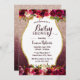 Chá de fraldas Borgonha Floral Moderna Rosa Dourada Convites à Literação.