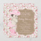 Garota rosa adorável com chapéu de cowboy rosa e botas de cowboy cor-de-rosa com burlap em um calico rosa doce. Este convite para chá de fraldas de colmeia rosa giro é facilmente personalizado para o seu evento simplesmente adicionando os seus detalhes no estilo de fonte e cor, texto e layout da sua escolha.