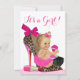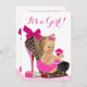 Calçado de alto calcanhar de leopardo rosa-quente convite para chá de fraldas com adorável menina vestindo um tutu rosa quente e uma bonito corda de pérolas em um lugar elegante e uma garrafa de perfume rosa, batom vermelho e fundo de calçado alto de leopardo rosa. Este bonito convite de chá de fraldas de calçado de alto salto, rosa-quente, é facilmente personalizado para o seu evento, adicionando detalhes do seu evento, estilo da fonte, tamanho e cor da fonte e texto. Você também pode mudar a cor de fundo neste convite de chá de fraldas-leopardo rosa giro.