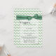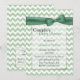 O convite para o chá de fraldas do na moda é feito em um padrão de ziguezague amarelo e verde claro. Gráficos de uma área de texto branco semitransparente borda prateada, no meio, tem uma faixa verde e um arco bonito, mutados, no topo. A parte de trás é feita no mesmo padrão de chevron, com outra área de texto, na parte inferior. Personalize todo o texto, frente e verso, de acordo com as suas necessidades de evento.