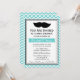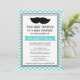 Um bigode e um chevron fez um convite de chá de fraldas em azul, branco e preto para um "É um menino!" chá de fraldas temático!