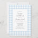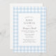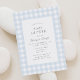 Convide amigos e família para compartilhar a alegria da sua chegada com este elegante convite de chá de fraldas de gingham azul.