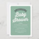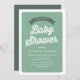 Convite personalizável para chá de fraldas verde retrô. Este convite para o chá de fraldas verde apresenta tipografia de vintage e tipografia simples. Personalize adicionando os detalhes do evento. Este convite de chá de fraldas de safra está disponível em outras cores.