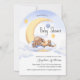 Chá de fraldas de convite decorado com um belo coelho dormindo na lua.