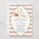 Convite Chá de fraldas Coroa Dourada e Rosa Moderna Strips