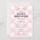 Design de chá de fraldas, russa e moderna, apresentando texto de marinho em fundo de xadrez de gingham de rosa claro. Perfeito para um verão ou um chá de fraldas temático do país.