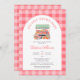 Celebrar a mãe a ser com o nosso belo convite local. A design apresenta uma fatia de mercado de um fazendeiro de aquarela em um fundo de gingham vermelho, fazer na moda e charmoso. Use as ferramentas de design para personalizar o texto. Também disponível como download digital.