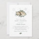 Um elegante convite para o chá de fraldas de inverno para a mãe ser. Design apresenta uma ilustração aquosa de um veado bebê enrolado em um leito de verde na neve. Flocos de neve imersos acendem o design. Este convite de chá de fraldas de feriado sazonal apresenta um esquema de cor neutro de branco, azul verde, sábio, cinza, ardósia e bronzeado natural que funciona bem para um bebê ou como um convite neutro em termos de gênero. Um padrão coordenado de flocos de neve se veste na parte de trás da carta.